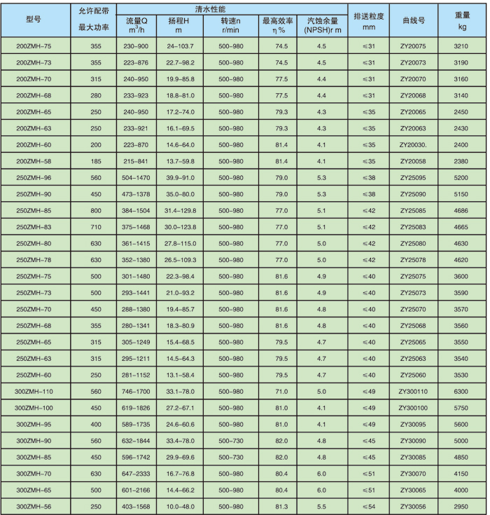 泵頭部分:ZM型渣漿泵為雙泵殼結(jié)構(gòu),即前、后泵殼、前護(hù)板、后護(hù)板、護(hù)套、軸套組成。過流部分采用JM3制造,前、后泵殼由灰鑄鐵或球墨鑄鐵制造。泵的吐出口位置可根據(jù)需要,按45°間隔,旋轉(zhuǎn)八個(gè)不同的角度安裝使用,并可根據(jù)用戶要求的角度安裝,葉輪前后蓋板有背葉片以減少泄漏,提高泵的壽命及效率。
